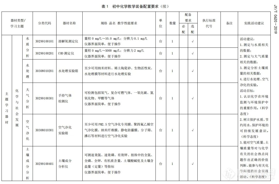 根據(jù)配置標(biāo)準(zhǔn),初中物理要求配置微型教學(xué)掃描隧道顯微鏡、光學(xué)顯微鏡、天平、各類(lèi)傳感器、激光測(cè)距儀、示波器等;初中化學(xué)要求配置電動(dòng)離心機(jī)、烘干箱、電子天平、各類(lèi)傳感器、溶解氧測(cè)定儀、COD測(cè)定儀、手持氣體檢測(cè)儀、土壤成分分析儀等;初中生物要求配置高壓滅菌器、超凈工作臺(tái)、恒溫培養(yǎng)箱、生物顯微鏡、各類(lèi)試劑;初中地理要求配置試驗(yàn)箱、二氧化硫檢測(cè)儀、PM2.5檢測(cè)儀、水準(zhǔn)儀、激光測(cè)距儀、各類(lèi)傳感器、聲級(jí)計(jì)、電子天平等;初中數(shù)學(xué)要求配置標(biāo)尺、經(jīng)緯儀、傳感器等;小學(xué)數(shù)學(xué)則要求配置托盤(pán)天平、簡(jiǎn)易天平、數(shù)字天平等儀器設(shè)備。